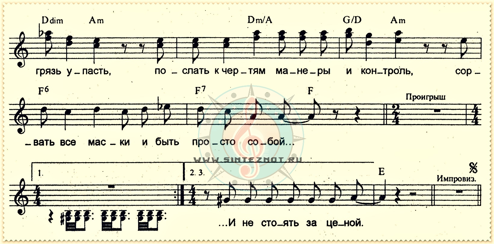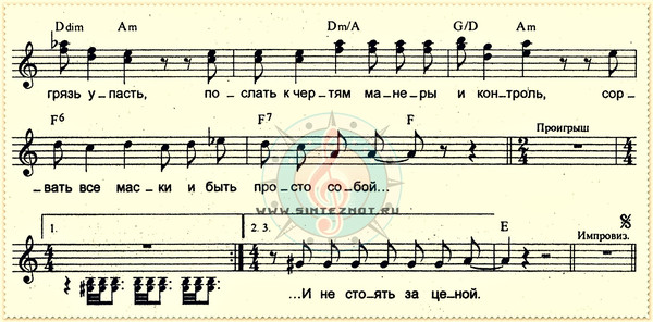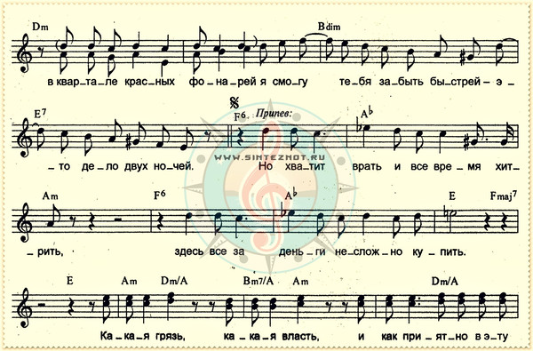 грязь ария ноты аккорд