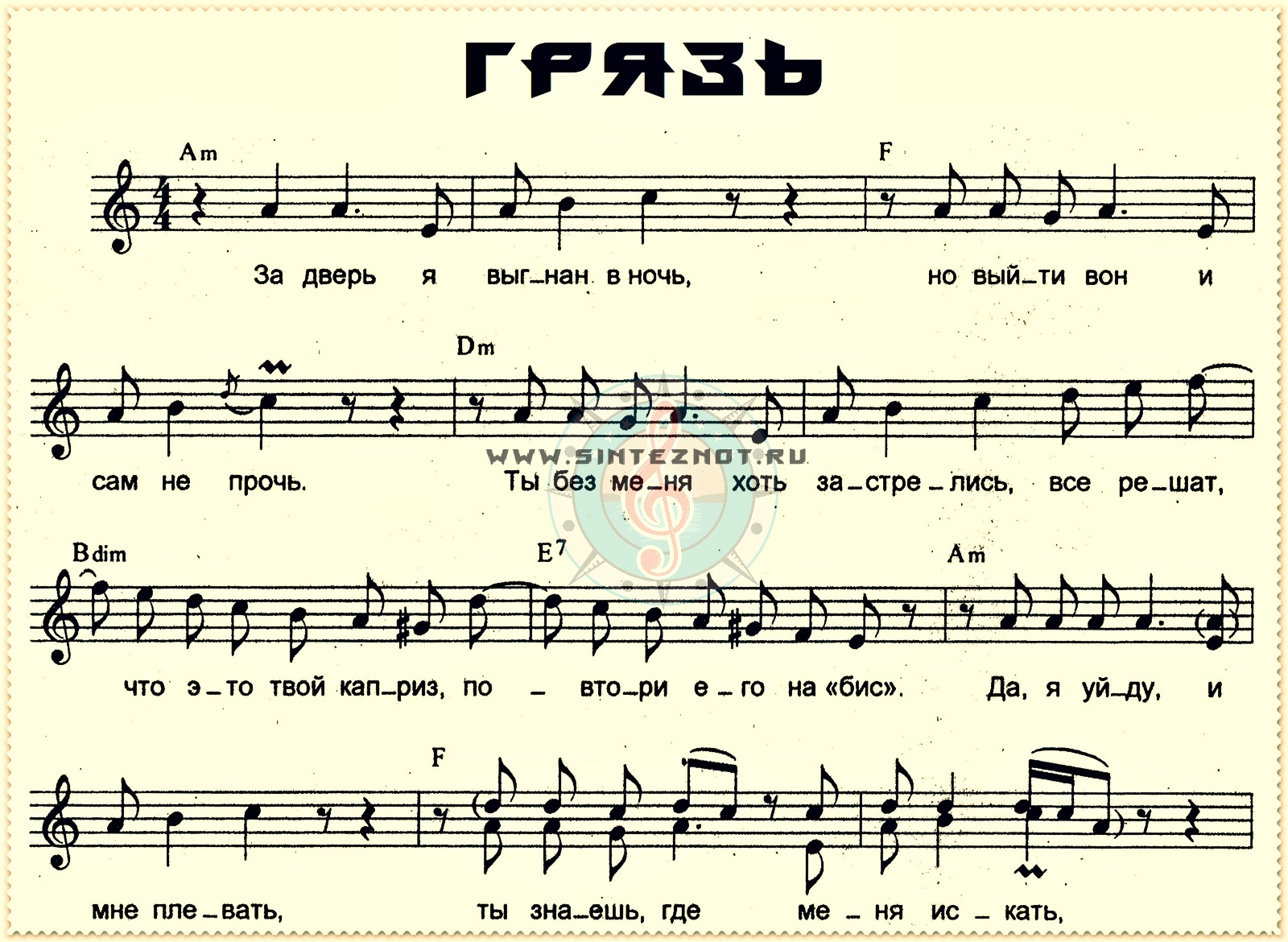 грязь ноты