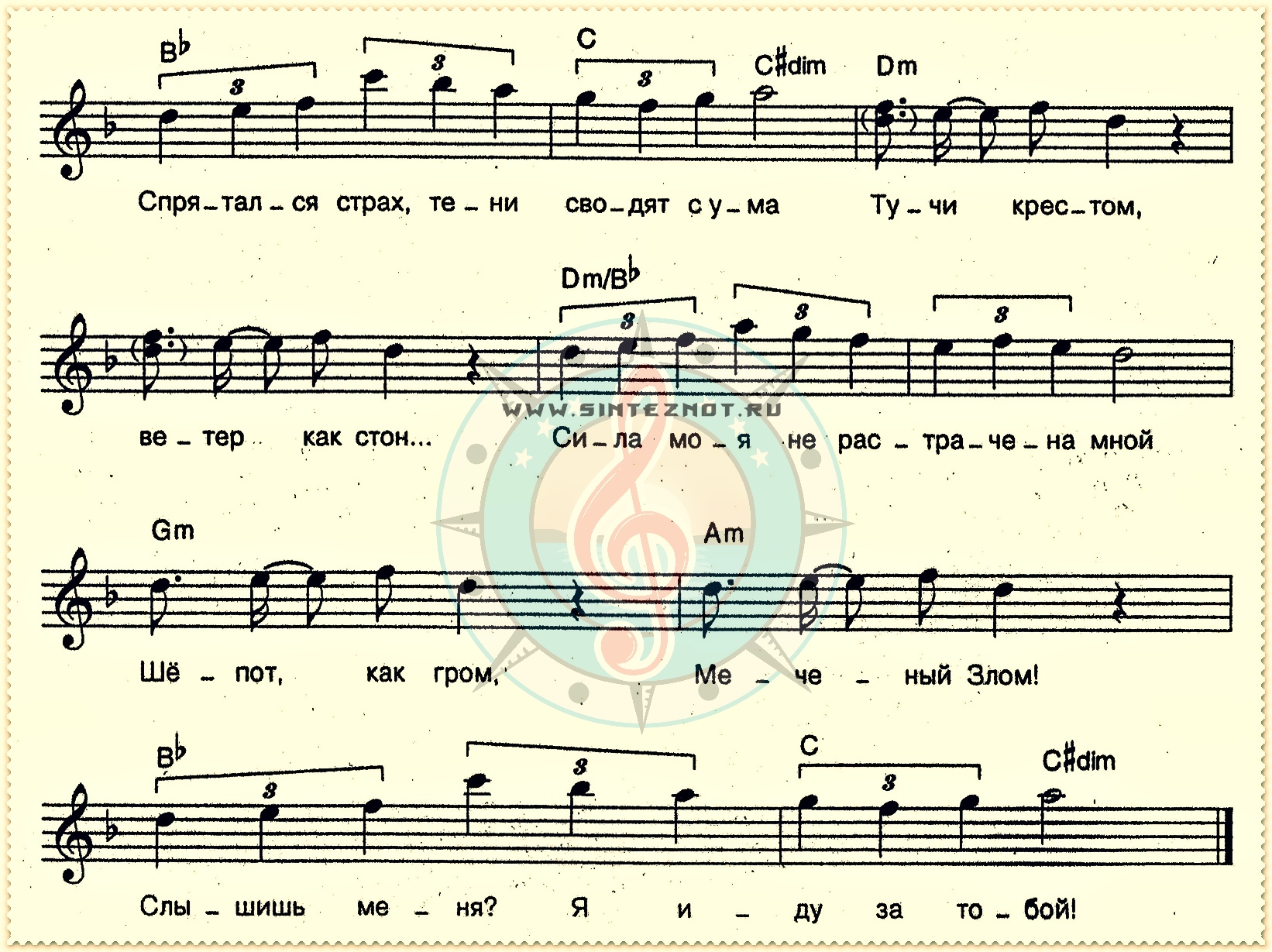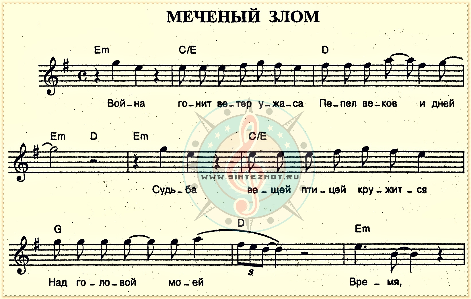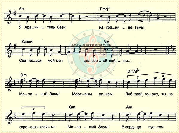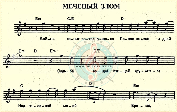 меченый злом ноты