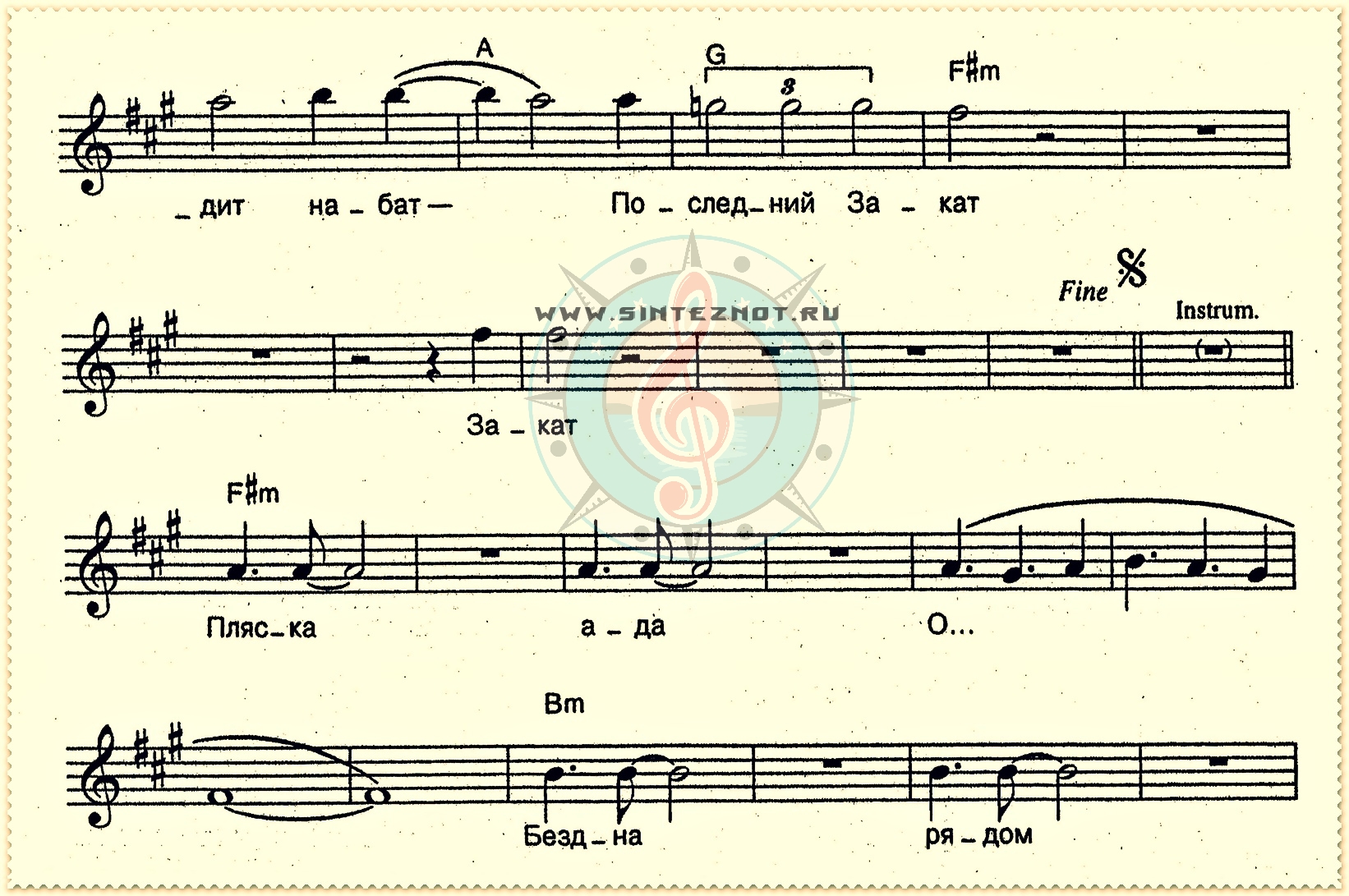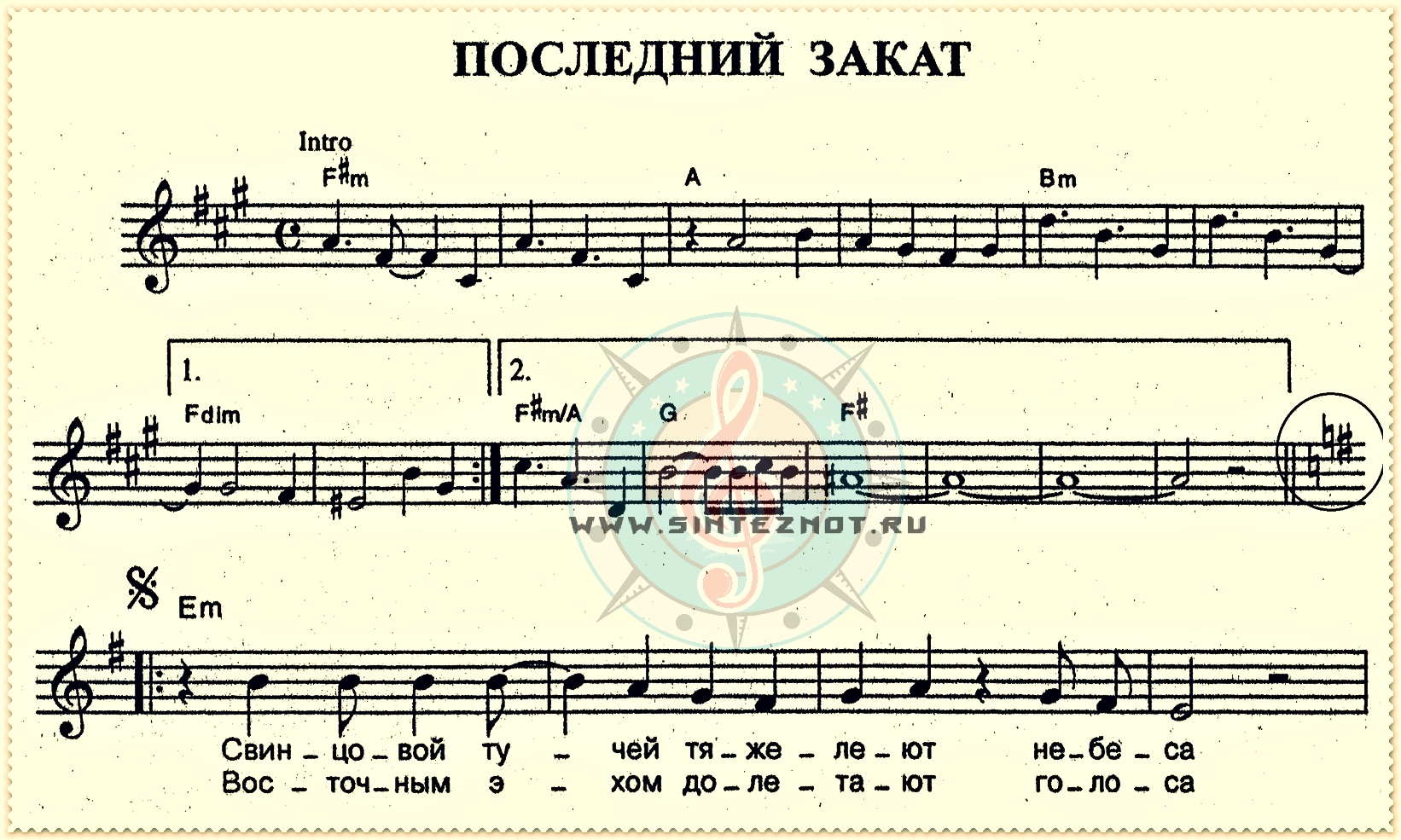 последний закат ноты