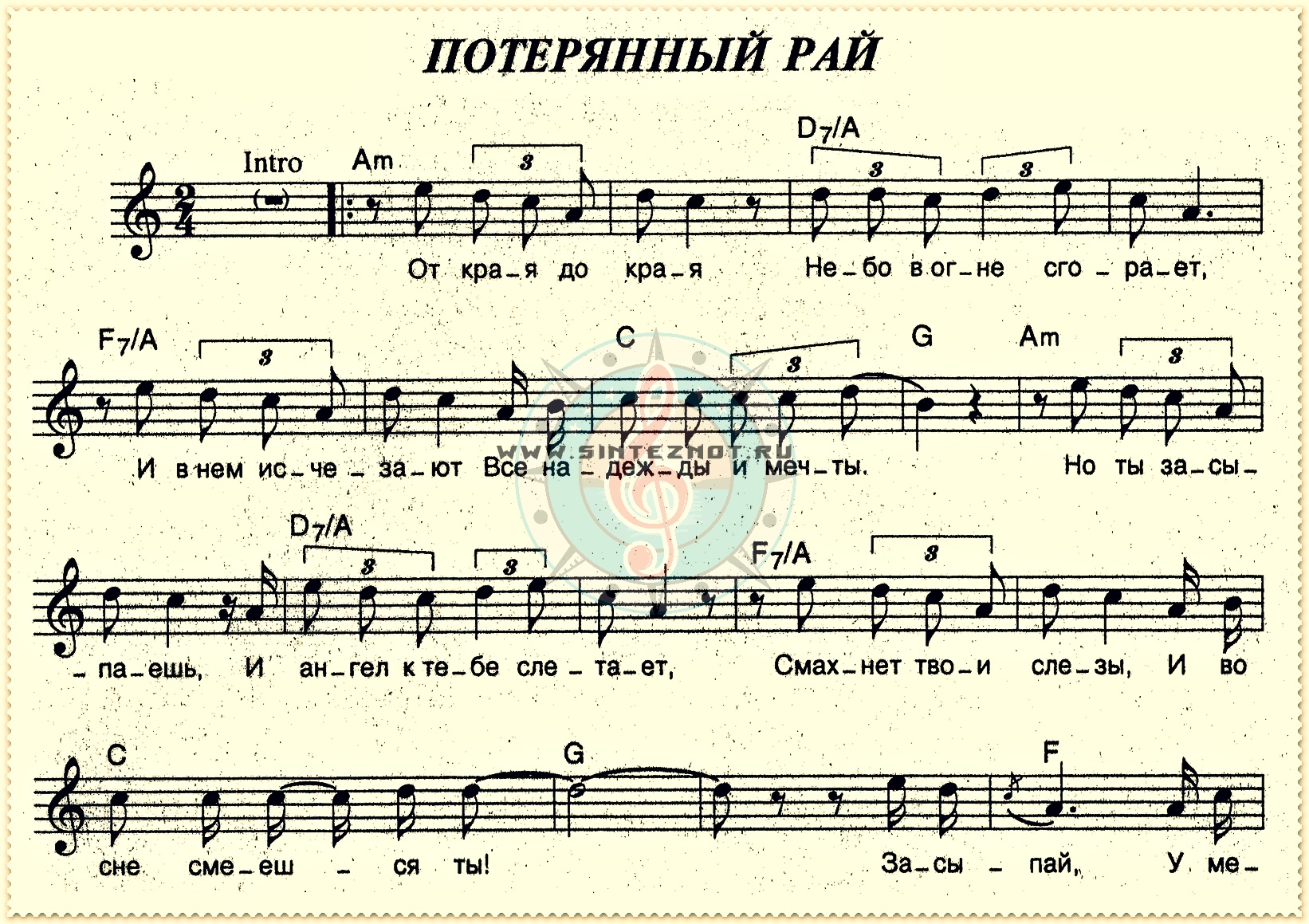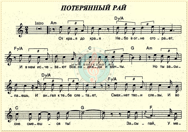 потерянный рай ноты