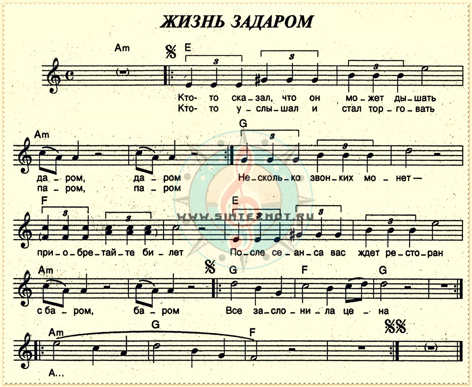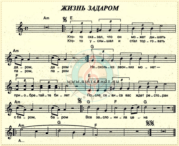 жизнь задаром ноты