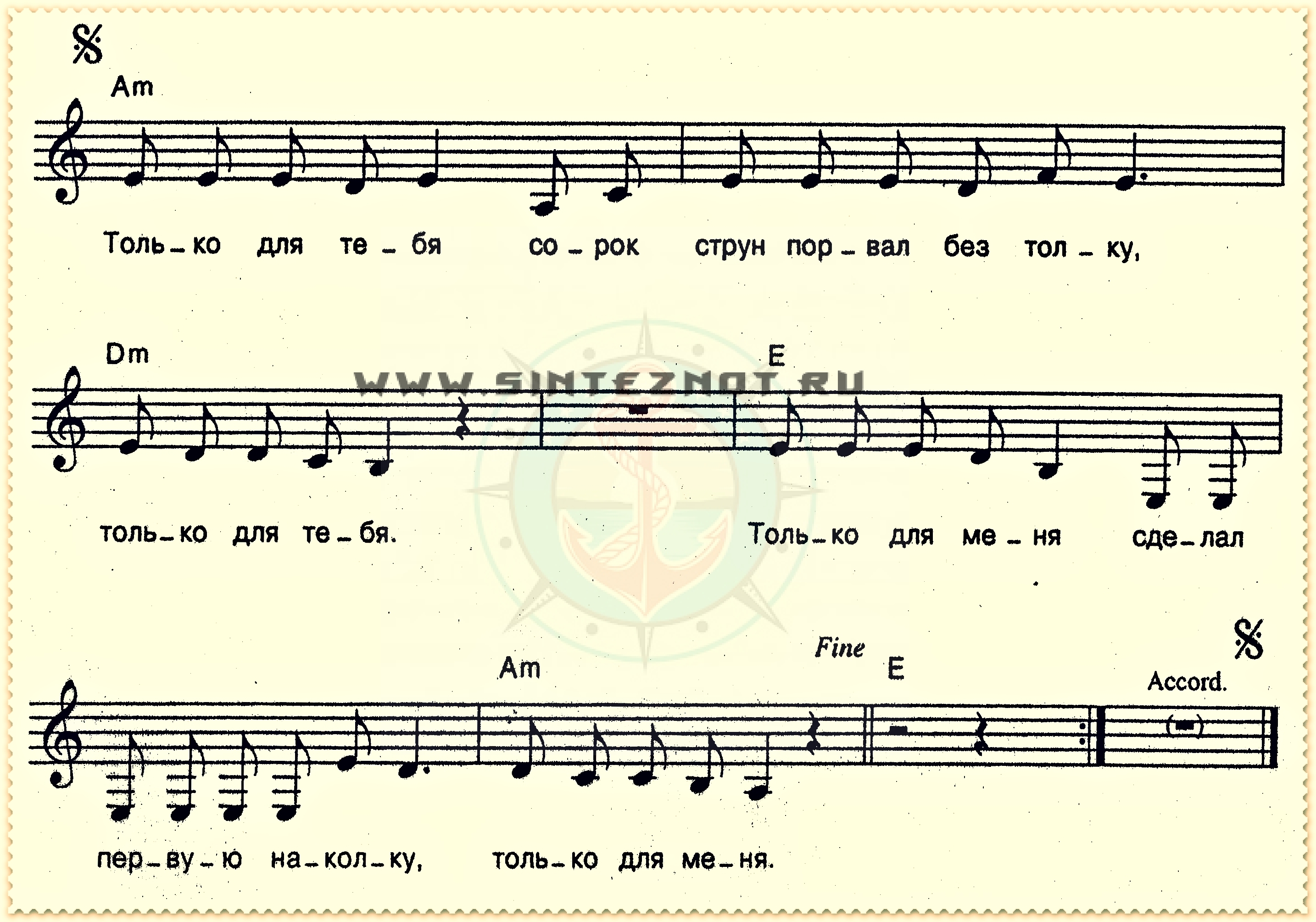 Только для тебя, сорок струн порвал без толку, только для тебя