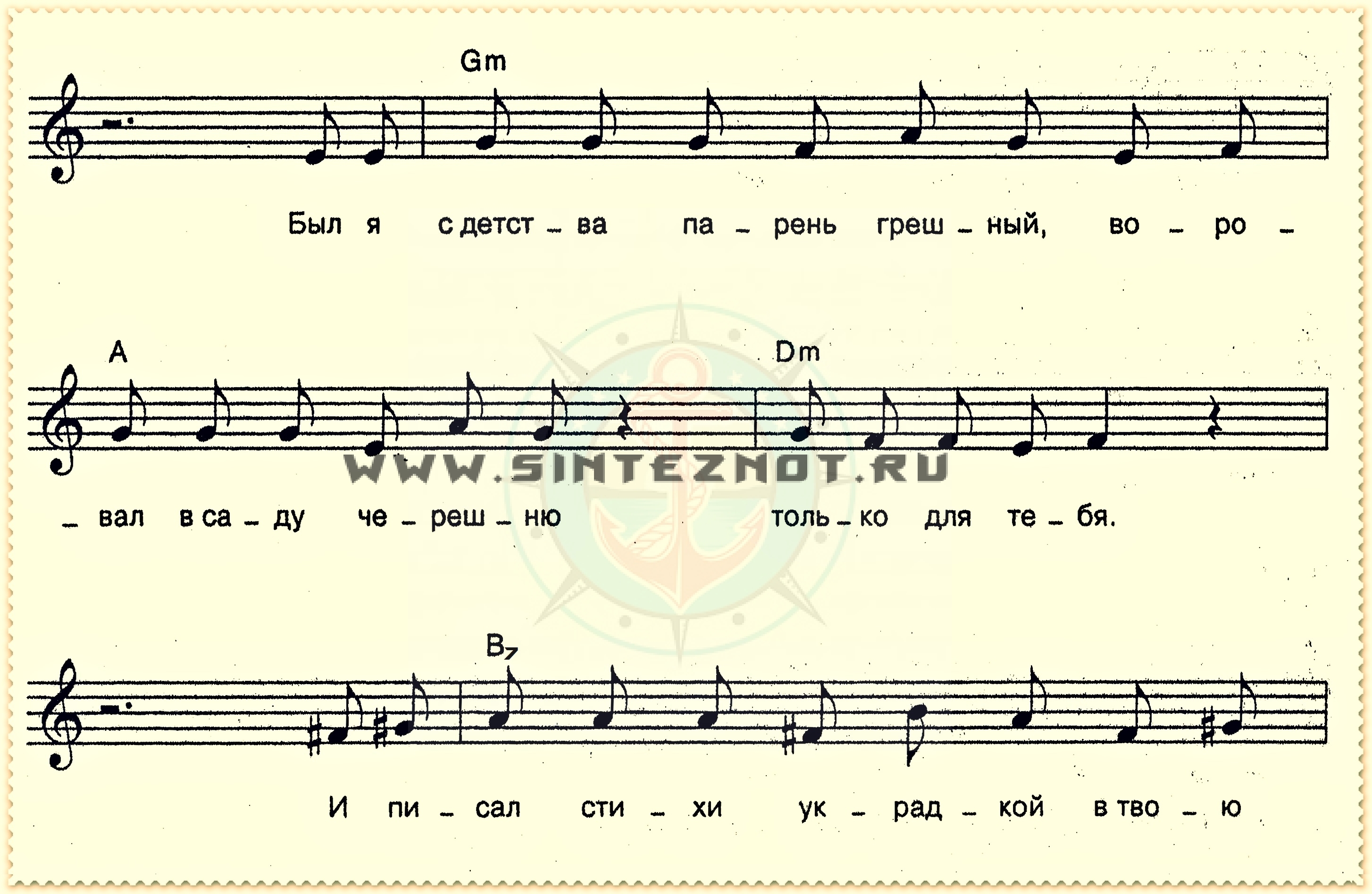 Был я с детства парень грешный, воровал в саду черешню, только для тебя