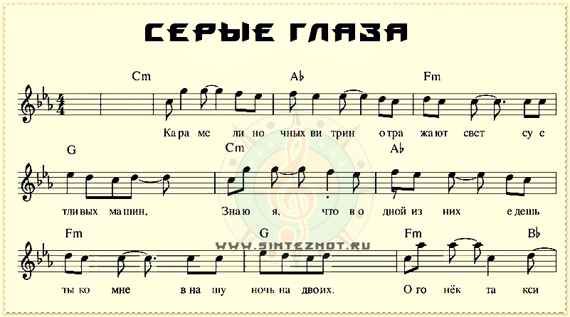 серые глаза ноты