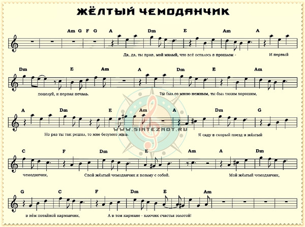 желтый чемоданчик ноты