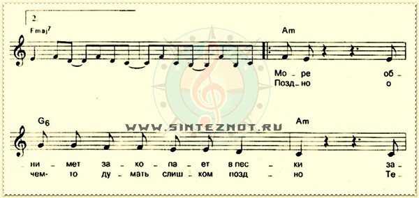 земфира ноты для синтезатора